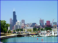 芝加哥并不是一個旅游城市,人口也只有200多萬。如果說觀光景點的話,就只有位于城市中心由近40多座高樓組成的摩天大樓群,高聳入云的高樓一座連著一座,使得芝加哥整個城市看上去象是鋼筋水泥構成的森林,充滿了大都市的氣魄。其中的西爾斯大廈(Sears Tower),在紐約的世貿大廈毀于恐怖事件之后,成為全美最高建筑。