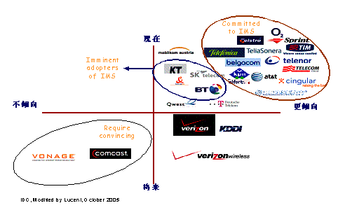 Yankee集團(tuán)的IMS調(diào)查,朗訊在IMS領(lǐng)域有著絕對的領(lǐng)先優(yōu)勢,在技術(shù)和試驗(yàn)網(wǎng)上都優(yōu)越于競爭對手。