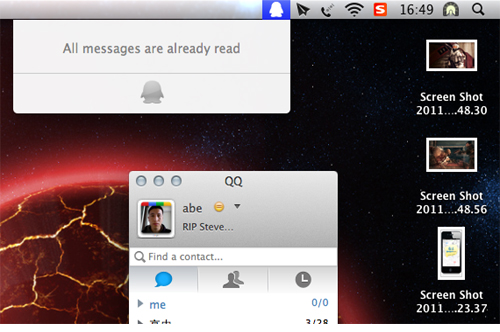 蘋(píng)果產(chǎn)品蘋(píng)果上的QQ客戶(hù)端QQ for Mac剛剛發(fā)布了最新版客戶(hù)端,主要增加了三個(gè)功能:語(yǔ)音聊天、通知欄消息提示、以及多文件傳輸。