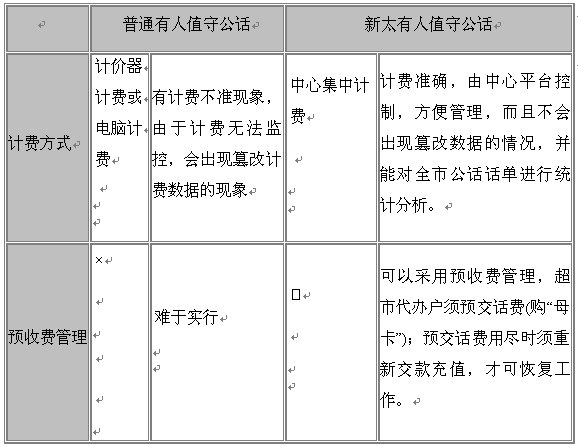 長期以來,普通有人值守公話采用計費(fèi)器+電話的方式進(jìn)行通話和計費(fèi),這種方式的弊端是費(fèi)率固話在計費(fèi)器上,費(fèi)率、時長、話單等都在計費(fèi)器本地控制,運(yùn)營商無法了解各公話的計費(fèi)情況,公話代辦戶不按計價器亂收費(fèi)、篡改計費(fèi)器電路以達(dá)到多收費(fèi)的現(xiàn)象時有發(fā)生,嚴(yán)重侵害消費(fèi)者利益,由此帶來的大量計費(fèi)糾紛又影響了運(yùn)營商聲譽(yù)和管理,集中管理控制有人值守公話勢在必行。
