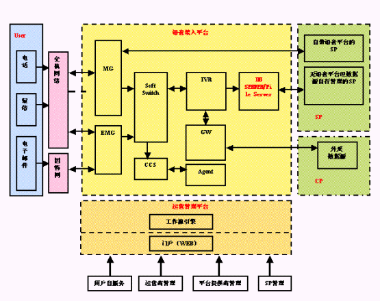 1、 IMSP平臺實現(xiàn)CTI+IN+IP技術(shù)特征融合,滿足業(yè)務(wù)層面需求多種資源,用戶提供同時包括語音、數(shù)據(jù)、視頻、無線的等業(yè)務(wù)在內(nèi)的綜合化服務(wù)。