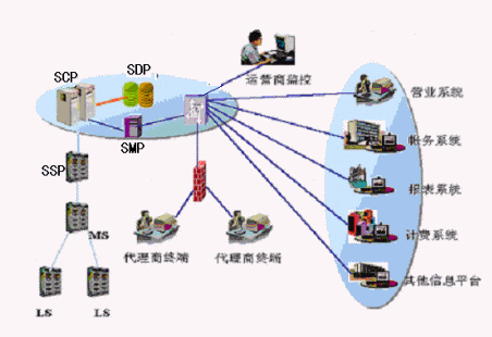 4、SMAP:負(fù)責(zé)在一定的權(quán)限內(nèi)為代理商提供接入訪(fǎng)問(wèn)功能,支持代理商通過(guò)撥號(hào)或DDN專(zhuān)線(xiàn)接入代理商管理系統(tǒng),代理商管理系統(tǒng)存儲(chǔ)代理商所有數(shù)據(jù),提供Web服務(wù)方式的應(yīng)用功能界面。代理商管理系統(tǒng)能夠?qū)I(yè)務(wù)受理的數(shù)據(jù)發(fā)送到智能網(wǎng)、交換機(jī)系統(tǒng),完成代理商對(duì)所代理業(yè)務(wù)的實(shí)時(shí)處理。