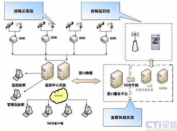 新太移動(dòng)監(jiān)控系統(tǒng)是一個(gè)客戶端/服務(wù)器結(jié)構(gòu)的多點(diǎn)遠(yuǎn)程無線視頻監(jiān)控系統(tǒng),它實(shí)現(xiàn)了視頻圖像信息的實(shí)時(shí)采集,監(jiān)控,管理,查詢,報(bào)警等眾多功能。新太移動(dòng)監(jiān)控系統(tǒng)由視頻采集終端,流媒體服務(wù)器和手機(jī)監(jiān)控應(yīng)用程序三個(gè)部分組成。視頻采集終端有效集成了網(wǎng)絡(luò)攝像頭、GPRS/EDGE/CDMA收發(fā)模塊和控制模塊的無線攝像頭或者是基于光纖與同軸電纜連接的視頻服務(wù)器;流媒體服務(wù)器則是綜合了數(shù)據(jù)流傳輸和用戶管理的系統(tǒng);手機(jī)端監(jiān)控應(yīng)用程序則是一個(gè)可以安裝在普通手機(jī)上的應(yīng)用程序,使用戶能通過手機(jī)直接觀看實(shí)時(shí)視頻和操控?cái)z像頭,由于它采用了世界上最先進(jìn)的視頻編解碼算法H.264的變體算法,用戶即使在GPRS/EDGE/CDMA這樣的無線窄帶網(wǎng)絡(luò)上也能獲得良好的監(jiān)控效果。