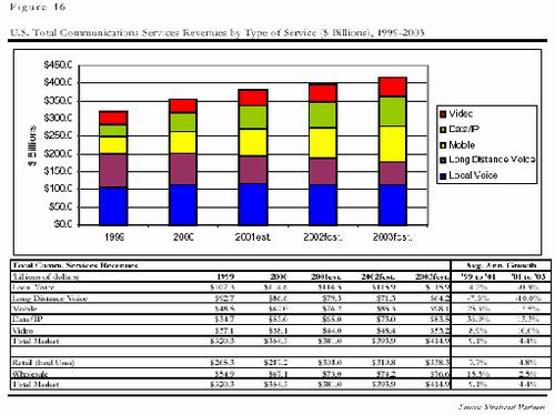 電信市場(chǎng)不是一個(gè)孤立的市場(chǎng),而是由電信服務(wù)和電信制造兩個(gè)緊密相連的市場(chǎng)組成的。電信制造業(yè)不斷進(jìn)行研發(fā)創(chuàng)新,為電信服務(wù)業(yè)提供新的業(yè)務(wù);而電信服務(wù)也利用電信制造業(yè)的新技術(shù),并把這些服務(wù)最終提供給商業(yè)和普通消費(fèi)者兩類用戶?梢哉f,電信制造業(yè)的發(fā)展在很大程度上是由電信服務(wù)業(yè)決定的。要了解電信制造市場(chǎng)的將來,不得不從電信服務(wù)市場(chǎng)的變化談起!