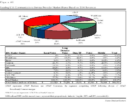 。∑髽I(yè)能力:由于沒有市話公司,AT&T缺乏對普通消費(fèi)者的最后一公里的接入手段。收購地區(qū)性市話公司的可能性不大;而新建市話網(wǎng)絡(luò)成本巨大,不易成功。因此在2001-2002年,AT&T以超過1000億美元的巨資收購了3家地區(qū)性的寬帶接入提供商,希望以此建立與普通消費(fèi)者的直接聯(lián)系。