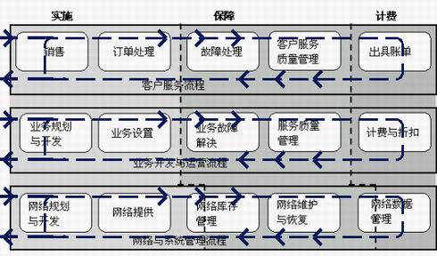 電信運(yùn)營乃至整個電信企業(yè)的經(jīng)營管理也越來越倚重于電信網(wǎng)絡(luò)支持系統(tǒng)。以最短的時間向用戶提供最新的業(yè)務(wù),對同一用戶提供豐富的消費(fèi)方式的選擇,對不同用戶進(jìn)行交叉銷售,乃至對價值鏈中的合作伙伴進(jìn)行有效管理,這些都要求業(yè)務(wù)管理與網(wǎng)絡(luò)體系的高度整合。西方的現(xiàn)代電信服務(wù)企業(yè),都紛紛以操作支持系統(tǒng)(OSS)的要求來規(guī)范自身企業(yè)的運(yùn)營,努力做到企業(yè)的每個業(yè)務(wù)操作都能在電信運(yùn)營導(dǎo)圖(TOM)中找到相應(yīng)的位置,而每個步驟和其他步驟的銜接都符合TOM的規(guī)范要求。近年提出的內(nèi)容更加廣泛的擴(kuò)展電信運(yùn)營導(dǎo)圖(eTOM)更是規(guī)范了電信業(yè)務(wù)管理的所有重要方面。