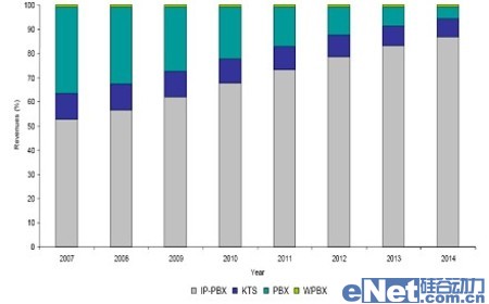 圖1:企業(yè)通信產(chǎn)品市場份額預(yù)測(2007-2014)