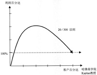 對(duì)客戶群的分析,經(jīng)濟(jì)理論界有一個(gè)著名的80-20理論,即在一個(gè)企業(yè)中,通常是20%的客戶貢獻(xiàn)了80%的利潤(rùn),而有可能40%的客戶加起來(lái)的利潤(rùn)還不到1%;而依照20-300理論,實(shí)際上20%的客戶,貢獻(xiàn)著企業(yè)300%的利潤(rùn),言外之意就是說(shuō),剩下的客戶可能是“吃”掉利潤(rùn)的人群。但是對(duì)于剩下的80%客戶,銀行可能要花費(fèi)更多的人力、物力去提供服務(wù),所以實(shí)際上銀行或企業(yè)很有可能在做虧本買賣。因此,分析客戶群,調(diào)配資源非常重要(如下圖所示)。