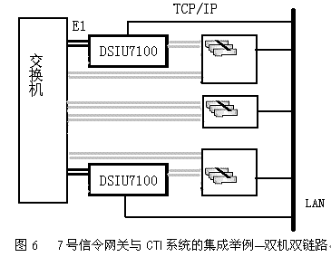 。。DSIU7100單鏈路網(wǎng)關(guān)能夠處理一條7號信令鏈路,可以支持4096話路,為通信網(wǎng)上的多種增值服務(wù)系統(tǒng)提供七號信令網(wǎng)絡(luò)平臺,使其具有七號信令接口。其突出特點是――兩個DSIU7100可以成對配置,共用同一個信令點碼。這種配置是完全的冗余方案。正常操作時,信令是由兩個DSIU7100負荷分擔的,一旦某個DSIU7100發(fā)生故障,則故障網(wǎng)關(guān)上的業(yè)務(wù)會由另一個DSIU7100來接管。