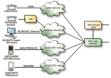 業(yè)務融合是指可以使用不同終端設備,通過不同接入網(wǎng)絡在任意時間和地點可接入的業(yè)務,但業(yè)務標準是統(tǒng)一的。IMS 是和接入無關的技術,可支持固定和移動接入網(wǎng)絡,以及其它寬帶接入網(wǎng)絡,支持用戶通過固定終端,移動終端,SIP軟終端接入到統(tǒng)一標準的多媒體業(yè)務。