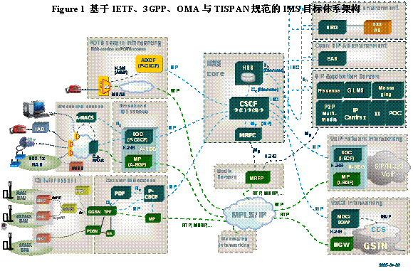 主要從固定網(wǎng)的角度研究以IMS為核心控制系統(tǒng)的FMC目標網(wǎng)絡架構,制定了基于IMS的NGN/FMC相關規(guī)范,在3GPP與TISPAN的聯(lián)合工作下,TISPAN的IMS取得了不小的進展。OMA采用IMS開發(fā)業(yè)務引擎,并制定端到端業(yè)務引擎的規(guī)范