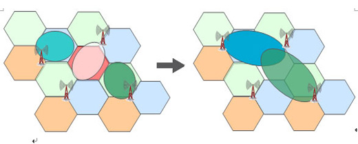一旦出現(xiàn)退服,OSS會(huì)協(xié)調(diào)問(wèn)題基站周邊基站的扇區(qū)來(lái)補(bǔ)償退服的無(wú)線覆蓋。如下圖,參與補(bǔ)償?shù)幕緯?huì)調(diào)整下行發(fā)射功率、天線傾角等來(lái)補(bǔ)償退服區(qū)域,甚至調(diào)低上行信號(hào)接收門限變相地?cái)U(kuò)大該扇區(qū)覆蓋以接入更多退服區(qū)域的終端。當(dāng)然,由于扇區(qū)的調(diào)整,會(huì)造成鄰區(qū)關(guān)系變化、切換邊界變化、干擾增加,這些就需要OSS提供的其他功能ANR、MRO、ICIC來(lái)聯(lián)合優(yōu)化。