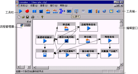 ZingServ標(biāo)準(zhǔn)版本中的IVR可以直接通過SQL語句存取Mysql,Oracle,Sybase和MSSQL Server這4種數(shù)據(jù)庫,并且可以通過變量一次對(duì)多條記錄中的多個(gè)字段進(jìn)行操作。這種方式大大減少了二次開發(fā)的工作量,給集成商和最終用戶帶來了許多方便。