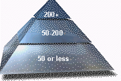 從另外一個角度,我們來分析一下呼叫中心市場的全球發(fā)展,呼叫中心市場按照用戶規(guī)模來劃分,可以劃分成200座席以上以電信為代表的大型呼叫中心市場,50到200座席,以銀行,證券等金融機構(gòu)為代表的中型呼叫中心市場以及50座席以下的大多數(shù)企業(yè)及企業(yè)用戶為代表的小型呼叫中心市場,從左圖很容易看出,呈現(xiàn)出的是一個金字塔的分布機構(gòu),據(jù)權(quán)威機構(gòu)的統(tǒng)計數(shù)據(jù)表明,200座席以上的呼叫中心已經(jīng)趨近飽和,大約5%的發(fā)展空間,而50座席以下的話叫中心市場取呈現(xiàn)出勃勃生機,發(fā)展空間很大,大約70%的市場容量,那么翻過來,我們也很容易看到,市場機會的不同,導(dǎo)致