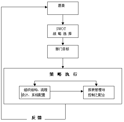 愿景講的是要達(dá)到什么境界(What),而戰(zhàn)略方案和執(zhí)行目標(biāo)就是如何做到(How)以及何時(shí)要做到(When),戰(zhàn)略方案是一套完整的攻擊和防守策略,涵蓋事業(yè)經(jīng)營(yíng)的各方面,譬如在市場(chǎng)營(yíng)銷(xiāo)要做到品牌知名度的程度到那兒,對(duì)消費(fèi)者才能產(chǎn)生一定的吸引力,也就是品牌指名購(gòu)買(mǎi)的拉力(Pull)。另外在銷(xiāo)售網(wǎng)點(diǎn)的規(guī)劃要做到如何的偏及程度,讓消費(fèi)者能不費(fèi)力氣的找到零售點(diǎn)或經(jīng)銷(xiāo)商,而且在銷(xiāo)售據(jù)點(diǎn)能獲得展示的亮點(diǎn)以及商家的提示,也就是產(chǎn)生將自家產(chǎn)品從眾多競(jìng)爭(zhēng)者產(chǎn)品當(dāng)中被強(qiáng)力推薦的推力(Push)。此外在售后服務(wù)及咨詢(xún)服務(wù)方面,如何能提供消費(fèi)者一個(gè)隨時(shí)隨地、方便且價(jià)格低廉的聯(lián)系管道,也就是讓消費(fèi)者在使用和遇到問(wèn)題時(shí),可以被快速而確實(shí)的服務(wù),加速產(chǎn)品使用的及時(shí)性和普遍性,以及客戶(hù)對(duì)企業(yè)的信任度和忠誠(chéng)度(Ubiquity and Loyalty)。同時(shí)企業(yè)運(yùn)營(yíng)的效率、研究發(fā)展的技術(shù)和財(cái)務(wù)的健全性也是屬于不可或缺的內(nèi)部運(yùn)營(yíng)重要支撐,如何的應(yīng)用最先進(jìn)的運(yùn)營(yíng)觀念、科技技術(shù)、以及嚴(yán)謹(jǐn)?shù)呢?cái)務(wù)會(huì)計(jì)處理,才能快速及時(shí)的支持市場(chǎng)發(fā)展、因應(yīng)大量而快速增加的客戶(hù)數(shù)以及在銷(xiāo)售和服務(wù)方面與日俱增的復(fù)雜度、而同時(shí)確保營(yíng)收獲利的正確完整,讓企業(yè)這個(gè)有機(jī)體能生生不息的自我學(xué)習(xí)并運(yùn)作成長(zhǎng)(Learning Organization)。我們以下面的圖表來(lái)顯示一個(gè)完整的愿景戰(zhàn)略執(zhí)行路程。