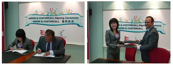 2007年5月16日,億迅中國(guó)軟件有限公司北京分公司的會(huì)議室里花團(tuán)錦簇,eSOON與Customcall公司的簽約儀式在和諧融洽的氣氛中進(jìn)行。雙方先對(duì)未來(lái)的合作發(fā)展進(jìn)行了討論,10點(diǎn)58分,億迅公司CEO李冰影女士與澳洲Customcall CEO Mike Adams先生在購(gòu)買EZactor的合約上簽上了字,這標(biāo)志著億迅自主研發(fā)的呼叫中心CRM產(chǎn)品-EZactor成功進(jìn)入國(guó)際市場(chǎng),也是中國(guó)的民族品牌軟件進(jìn)入國(guó)際市場(chǎng)。