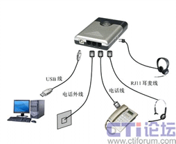 “話務(wù)通”設(shè)計(jì)新穎,接口包括電話線路接口、電話機(jī)接口、耳機(jī)接口和USB通信接口。配置立體聲揚(yáng)聲器和環(huán)型提示燈,提供聲光提示。“話務(wù)通”能夠提供IP網(wǎng)絡(luò)電話,自動(dòng)應(yīng)答,自動(dòng)外撥,來電彈屏,語音錄放,語音留言等功能。