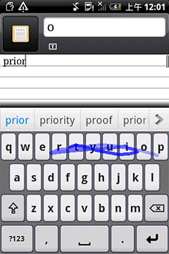 這里我們選取全鍵盤布局方案來測(cè)試本次的滑行輸入。首先是單行輸入,我們通過快速的手指滑行分別輸入“prior” “were”,單詞被準(zhǔn)確識(shí)別。