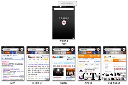適用于iPhone™、iPad™和iPod touch™的聲龍搜索(Dragon Search)同時也在蘋果 App Store推出,為用戶提供強大的語音搜索功能;谠摦a(chǎn)品,用戶只需說出自己的搜索要求,便可通過移動網(wǎng)絡(luò)找到相應(yīng)的信息和答案。 另外,聲龍搜索(Dragon Search)創(chuàng)新的搜索功能界面(Dragon Search Carousel)還可以支持用戶同時訪問包括谷歌、新浪愛問、優(yōu)酷網(wǎng)、淘寶網(wǎng)和大眾點評網(wǎng)等多個熱門網(wǎng)站和搜索引擎,并在幾秒鐘內(nèi)獲得來自多個內(nèi)容來源的搜索結(jié)果。