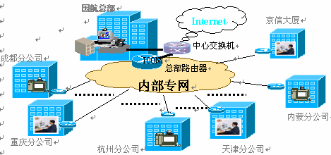 國航營銷部需要在已有的網(wǎng)絡(luò)平臺上,建立一個能進行總部與各分公司之間交互式溝通的環(huán)境,需要一種網(wǎng)絡(luò)多媒體協(xié)同工作的應(yīng)用。