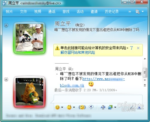 微軟MSN中國市場部總監(jiān)陳嘉榕表示:“微軟MSN始終致力于保護用戶的隱私和賬戶安全,為廣大用戶提供安全無憂的網(wǎng)絡(luò)服務(wù)。隨著軟件的不斷優(yōu)化,越來越多的安全產(chǎn)品被不斷的集成在Messenger平臺之中。但是在技術(shù)不斷進步的同時,我們相信用戶不斷提高的賬戶安全保護意識才是從根本上保證溝通安全的不二法門。對此,MSN將和用戶一同努力,打造純凈的互聯(lián)網(wǎng)人脈圈!