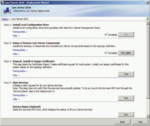 準(zhǔn)備好基礎(chǔ)結(jié)構(gòu)并發(fā)布拓?fù)浜,即可開(kāi)始安裝前端服務(wù)器和服務(wù)器角色,以啟用 A/V 會(huì)議、企業(yè)語(yǔ)音、監(jiān)控、存檔及其他功能。準(zhǔn)備每臺(tái)服務(wù)器從運(yùn)行部署向?qū)В▍⒁?jiàn)圖 3)開(kāi)始,但每個(gè)服務(wù)器角色都有自己的安裝和配置要求。您可以在 TechNet 庫(kù)的“部署 Lync Server 2010 Standard Edition”部分查找更多詳細(xì)信息。