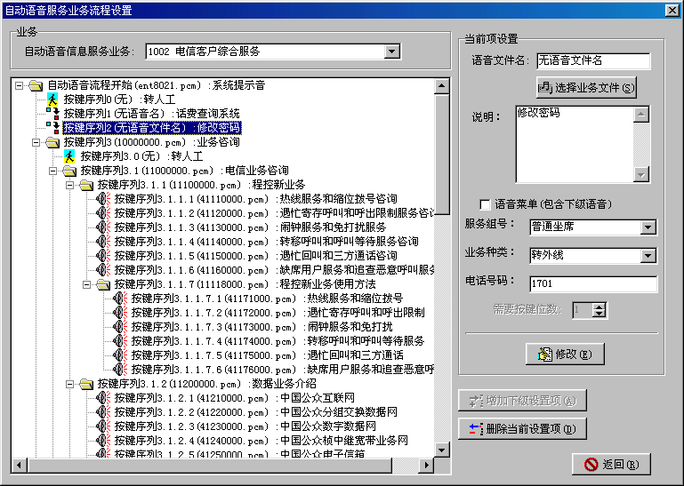 。。智能業(yè)務(wù)管理系統(tǒng)是Utron-CC2000進(jìn)行業(yè)務(wù)擴(kuò)充的主要手段。用戶(hù)如需擴(kuò)展新的業(yè)務(wù),主要通過(guò)智能業(yè)務(wù)管理系統(tǒng)向Utron-CC2000注冊(cè)該業(yè)務(wù);并為系統(tǒng)中的座席分配業(yè)務(wù)。根據(jù)實(shí)際業(yè)務(wù)的需求,生成相應(yīng)的系統(tǒng)信箱、業(yè)務(wù)腳本、服務(wù)項(xiàng)目等,來(lái)實(shí)現(xiàn)新業(yè)務(wù)的動(dòng)態(tài)加載。