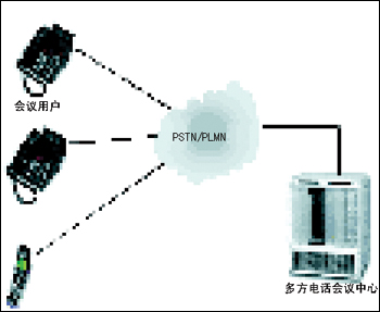 目前,根據(jù)建設(shè)思路中所提到的分期實(shí)施原則,第一期只完成本地多方電話會議中心平臺的建設(shè)。參加電話會議的各方用戶均直接通過公眾電話網(wǎng)撥入中心平臺,由中心平臺統(tǒng)一接入并組織會議資源為用戶服務(wù),結(jié)構(gòu)如圖2所示。