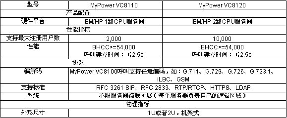 MyPower VC8100 IP通信服務器負責網關、IP電話機以及軟電話的注冊、號碼路由、增值業(yè)務提供等功能,基于MyPower VC8100的IP通信解決方案可以給用戶提供:IP語音通信、IP視頻通信、IP傳真通信;可以提供語音郵件、自動總機、號碼攜帶、按名字呼叫、搜尋組等增值應用;可以提供呼叫轉接、轉移、停泊、代答、保持等補充語音業(yè)務。
