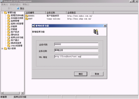 。。《XCCP呼叫中心系統(tǒng)》平臺,主要由PBX交換機、CTI服務(wù)器、IVR系統(tǒng)、應(yīng)用服務(wù)器、數(shù)據(jù)庫服務(wù)器、TTS系統(tǒng)、語音識別系統(tǒng)和座席系統(tǒng)等硬件設(shè)備和系統(tǒng)應(yīng)用軟件組成。它以電話服務(wù)為主要服務(wù)方式、結(jié)合計算機信息系統(tǒng)的資料數(shù)據(jù),為用戶提供全方位的服務(wù)。
