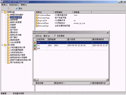 。。提供關(guān)于人工座席呼叫部分所有功能,班長臺提供除普通座席功能其他很多增強功能,詳細功能說明參見本方案第5.5節(jié)《人工座席》,那里有非常詳細的說明。