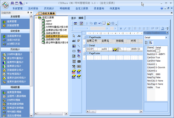 CMS是有效的對(duì)呼叫中心進(jìn)行監(jiān)視和管理的系統(tǒng)。它可以實(shí)時(shí)監(jiān)控整個(gè)呼叫中心的當(dāng)前數(shù)據(jù),按照座席、技能組、中繼線、隊(duì)列、路由進(jìn)行監(jiān)視,查看座席服務(wù)狀態(tài)及接通率各種指標(biāo),通過(guò)各項(xiàng)實(shí)時(shí)記錄和歷史記錄向用戶提供多種綜合分析報(bào)告和統(tǒng)計(jì)報(bào)告。其所生成的上百?gòu)垐?bào)表,可以協(xié)助企業(yè)有效管理資源,檢查成本,預(yù)測(cè)改善現(xiàn)有運(yùn)作的潛在需求。并提供圖表顯示,生成Excel文檔進(jìn)行再編輯,或者通過(guò)標(biāo)準(zhǔn)的報(bào)表形式進(jìn)行編輯。支持自定義報(bào)表。