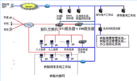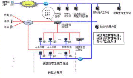 客戶利用電話、傳真、電子郵件、因特網(wǎng)、手機(jī)、網(wǎng)絡(luò)電話等撥打某統(tǒng)一特服號碼(如100xxxx)進(jìn)入鐵路客戶服務(wù)中心系統(tǒng),本系統(tǒng)依托鐵路各類業(yè)務(wù)技術(shù)支持系統(tǒng)和網(wǎng)絡(luò)系統(tǒng),通過人工受理或自動語音服務(wù)等方式全天24小時不間斷地為旅客、貨主提供各種鐵路服務(wù);形成了對外服務(wù)于客戶,對內(nèi)管理、分析、決策系統(tǒng)相結(jié)合的新型客戶服務(wù)中心。