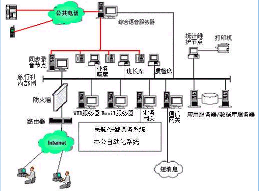 對于20個以下人工座席的中小型旅行社客戶服務(wù)中心系統(tǒng),則建議使用基于計算機(jī)語音板卡的方式,可以減少投資,同時具有良好的系統(tǒng)性能;對于大型的旅行社客戶服務(wù)中心系統(tǒng),可選用排隊交換機(jī)作為語音接入設(shè)備,以保障系統(tǒng)的高可靠性和穩(wěn)定性;大大提高了系統(tǒng)的適應(yīng)面。
