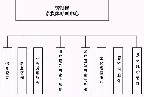 本系統(tǒng)具有自動(dòng)語音服務(wù)、人工坐席服務(wù)、信息咨詢、信息查詢、客戶投訴建議、客戶回訪與信息調(diào)查、因特網(wǎng)服務(wù)、管理人員對語音記錄的查詢等功能,并且結(jié)合圖形化的管理、監(jiān)控界面,使得客戶隨時(shí)隨地可以利用身邊的各種通訊工具獲得勞動(dòng)局的方便快捷的服務(wù)。