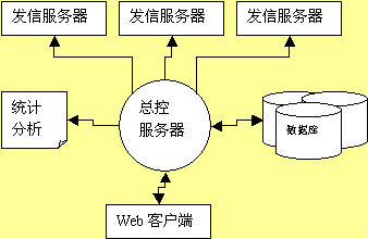 1. 以總控服務(wù)器為控制中心,控制一臺(tái)或多臺(tái)郵件發(fā)送服務(wù)器,每臺(tái)發(fā)送服務(wù)器管理一個(gè)或多個(gè)郵件隊(duì)列。控制中心控制郵件列表,任務(wù)列表、作業(yè)列表,并與業(yè)務(wù)數(shù)據(jù)庫(kù)通過數(shù)據(jù)庫(kù)接口連接,根據(jù)條件提取數(shù)據(jù),更新郵件發(fā)送列表,生成統(tǒng)計(jì)分析報(bào)告。