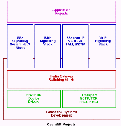 OpenSS7是由OpenSS7公司主導(dǎo)下開發(fā)的一個(gè)支持七號(hào)信令(SS7)和SIGTRAN的開源協(xié)議棧項(xiàng)目。該項(xiàng)目開始于1996年,它實(shí)現(xiàn)了ITU Q.700系列建議中的七號(hào)信令系統(tǒng)。隨著VOIP和軟交換的興起,OpenSS7的焦點(diǎn)集中在SIGTRAN協(xié)議的實(shí)現(xiàn)上(SIGTRAN可以看作是SS7的NGN版本)。其實(shí),OpenSS7其實(shí)并不僅僅局限七號(hào)信令, ISDN和軟交換的一系列信令都在它的考慮范圍之內(nèi)。