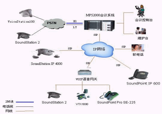 - 平臺(tái)組網(wǎng)能力強(qiáng)大,平臺(tái)提供了IP、數(shù)字、模擬、音頻等多種接口,可以與寶利通音頻會(huì)議終端、IP會(huì)議終端、視頻終端相連。