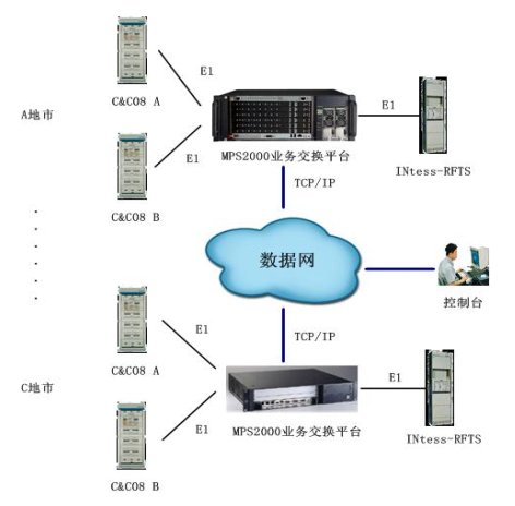 MPS2000應(yīng)用交換平臺即跨接于C&C08和排隊機之間,實現(xiàn)切換中繼的功能。為了方便管理,所有備份設(shè)備通過網(wǎng)絡(luò)進行統(tǒng)一網(wǎng)管,將各點的設(shè)備都通過數(shù)據(jù)網(wǎng)歸屬于總部的網(wǎng)管來進行管理,即在華總部就可實現(xiàn)各點出現(xiàn)中繼告警時的切換功能。