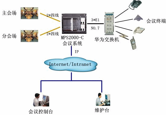 廊坊電力公司在2006年新配置了一套華為視頻會議系統(tǒng),為滿足國家電網(wǎng)公司對會議系統(tǒng) “一主兩備”的要求,公司急需一套電話會議系統(tǒng)作為視頻會議系統(tǒng)的應(yīng)急備份。廊坊電力公司相關(guān)專家經(jīng)過多方認(rèn)證,最終采用邁可行公司自主研發(fā)的MPS2000-C-II型交互式電話會議系統(tǒng)。