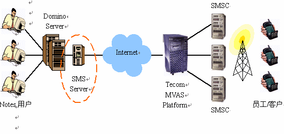 SMS Server,并根據(jù)實(shí)際情況安裝運(yùn)行在專用硬件服務(wù)器上,或與Domino共享硬件服務(wù)器。