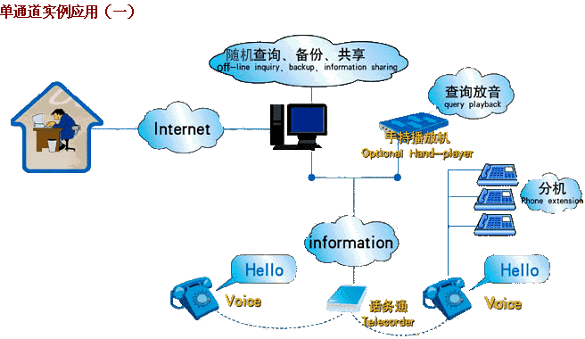 錄音記錄應(yīng)當(dāng)能夠方便地通過(guò)多種途徑回放,實(shí)現(xiàn)對(duì)錄音記錄資料的利用,這也是用戶配置電話錄音系統(tǒng)的最主要目的;胤趴梢酝ㄟ^(guò)我們公司開(kāi)發(fā)生產(chǎn)的選件手持播放器回放,通過(guò)網(wǎng)絡(luò)回放,通過(guò)聲卡在其它計(jì)算機(jī)上回放等多種方式來(lái)實(shí)現(xiàn)。