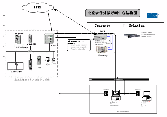 - 與現(xiàn)有客服中心IPCC解決方案中的2臺Cisco36相連,實現(xiàn)農(nóng)行本行業(yè)務(wù)的外撥服務(wù),如信用卡欠費催繳、代收汽車保險業(yè)務(wù)營銷、養(yǎng)路費客戶關(guān)懷等