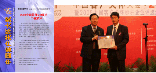 CALL CENTER & CRM ASSOCIATION)頒發(fā)的"2005年中國最佳CRM技術--最佳外撥技術獎"。