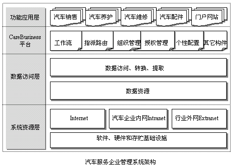 CareBusiness Suite主要包含了汽車(chē)銷(xiāo)售管理系統(tǒng)、汽車(chē)養(yǎng)護(hù)管理系統(tǒng)、汽車(chē)維修管理系統(tǒng)和汽車(chē)配件管理系統(tǒng)等系統(tǒng)模塊,這些系統(tǒng)及其系列模塊統(tǒng)一構(gòu)建于CareBusiness