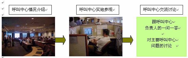 。。通過呼叫中心高級管理者實務(wù)中心的培訓(xùn)和基準評測(benchmarking)活動, 吸取韓國先進的呼叫中心產(chǎn)業(yè)經(jīng)驗,形成從事呼叫中心的專家集團的,促進中國國內(nèi)呼叫中心產(chǎn)業(yè)的發(fā)展。