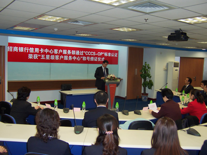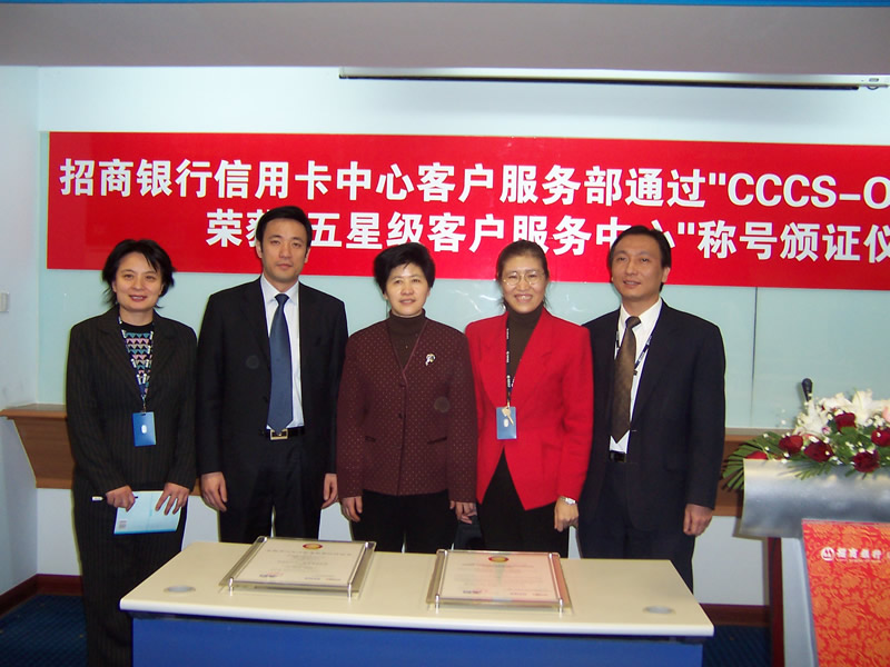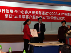 這天的上午10點(diǎn)30分,在招商銀行信用卡中心上海總部舉行了簡(jiǎn)約而隆重的頒證儀式,信用卡中心常務(wù)副總經(jīng)理梁瑤蘭從信息產(chǎn)業(yè)部電子信息中心副主任、中國(guó)信息化推進(jìn)聯(lián)盟秘書長(zhǎng)劉獻(xiàn)軍手中接過證書,標(biāo)志著國(guó)內(nèi)第一家五星級(jí)客戶服務(wù)中心誕生了!