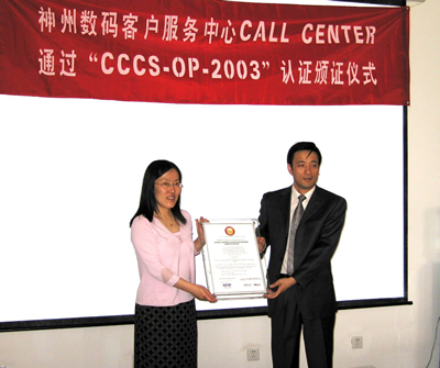 2005年6月2日,神州數(shù)碼呼叫中心通過(guò)了《全國(guó)呼叫中心運(yùn)營(yíng)績(jī)效標(biāo)準(zhǔn)》(CCCS-OP-2003)認(rèn)證,并獲得由中國(guó)信息化推進(jìn)聯(lián)盟客戶(hù)關(guān)系管理專(zhuān)業(yè)委員會(huì)頒發(fā)的認(rèn)證證書(shū)(四星級(jí)客戶(hù)服務(wù)中心),成為國(guó)內(nèi)IT行業(yè)首家通過(guò)此認(rèn)證的呼叫中心。
