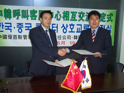 5月19日,在中韓客服中心相互交流協(xié)定儀式上,北京優(yōu)百斯管理咨詢有限責(zé)任公司與韓國光州女子大學(xué)簽訂了戰(zhàn)略合作協(xié)議,同時(shí)也標(biāo)志著雙方會(huì)更加緊密的合作,為促進(jìn)中韓客戶服務(wù)中心的交流和發(fā)展起到積極的推動(dòng)作用。