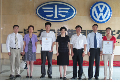 中國信息化推進聯(lián)盟秘書長劉獻軍向一汽-大眾頒發(fā)證書